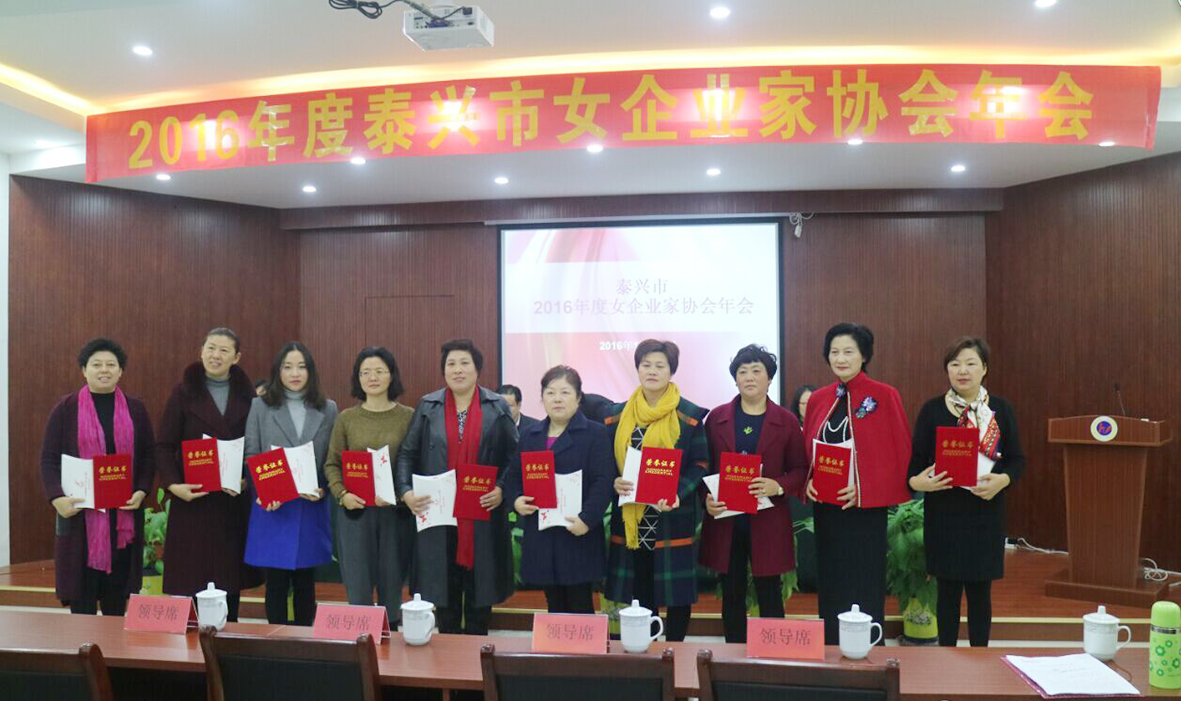会上泰兴市常 委、组织部长鞠林红为洪总等十位女企 业家颁发了2016年度“热心公益事业积极分子”荣誉证书,对“积极分子”在2016年的辛勤工作表示了感谢,并对2017年的工作提出了殷切希望。