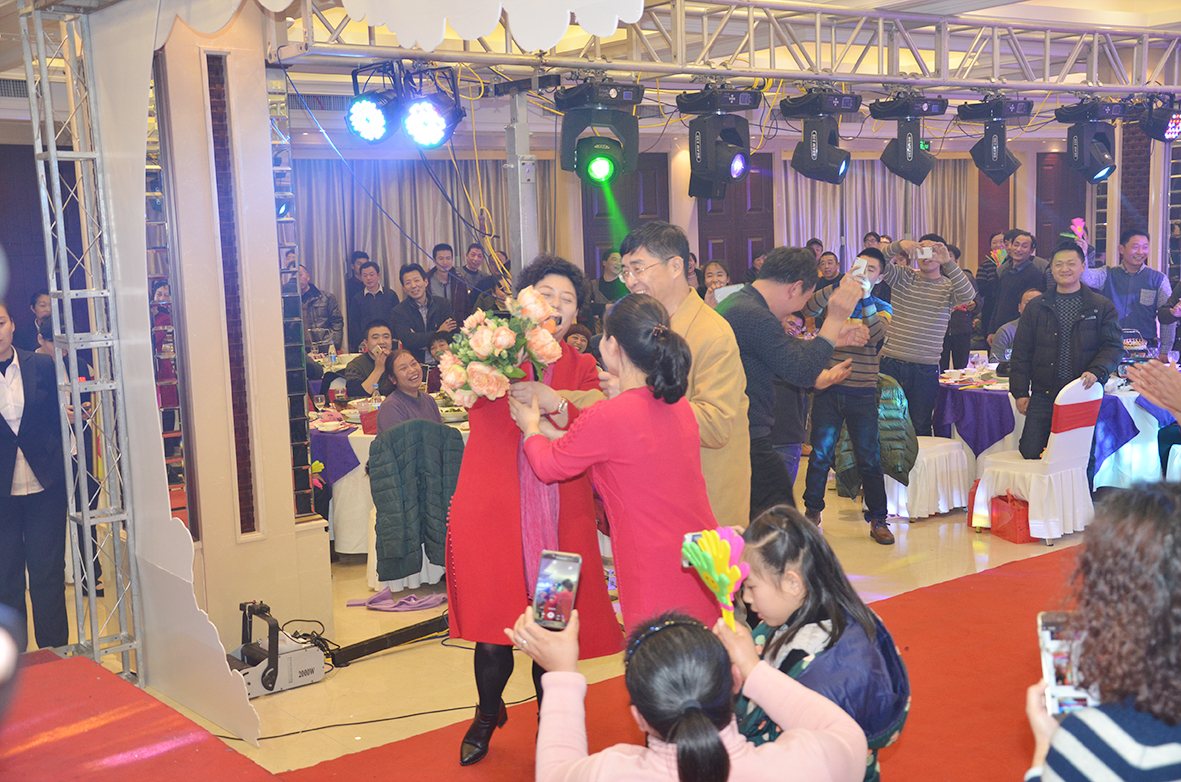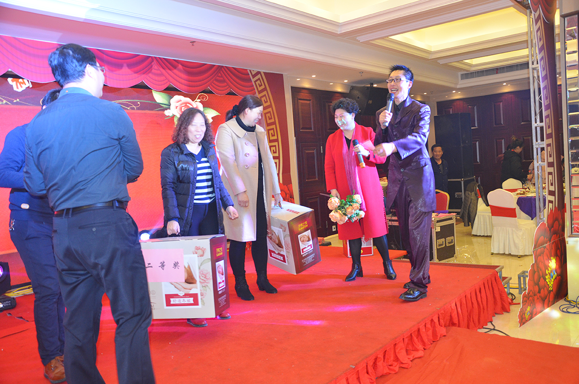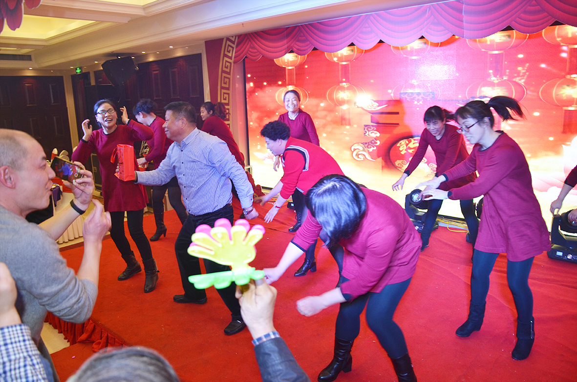 销售部徐美娟、刘凌为全场观众献上了一首《给你们》,正如歌词所唱“一定是特别的缘份,才可以一路走来变成了一家人”,如此应景的歌曲正是918博天堂人与人之间,似朋友更似亲人的真实写照;吕燕和高维静带来了脍炙人口的《自由飞翔》,全场观众跟着熟悉的节奏放声齐唱;整场演出高潮迭起,有高亢的《青藏高原》和《天路》、爆笑全场的二人转表演、更有演员带来的辣歌劲舞;嘉宾代表也即兴为我们带来了京剧《贵妃醉酒》、独唱《九寨沟之子》,赢得了满堂喝彩……在演出的间隙,主持人穿插着进行了抽 奖和有奖竞答,台上台下互动热烈。由董事长洪爱萍领衔的《摘钱舞》将整场晚会的气氛推向了高  潮,舞台上穿着红色衣服的演员们喜笑颜开,跟着音乐舞动全身。员工、嘉宾们纷纷涌上舞台跟着欢快的节奏,一起起舞,台下的观众拿出手机和相机记录下这欢快的时刻。整场联谊晚会在感恩、真情、欢快、喜庆的气氛中落下了帷幕。