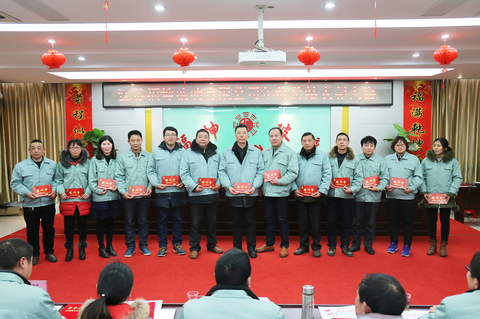 2016年度通报表扬个人:杨平风、徐霞、徐美娟、何世军、常俊峰、蒋龙泉、蒋正午、叶祝健、戴建明、卜卫群、袁晓红、宋飞、李青霞(从左到右)