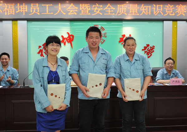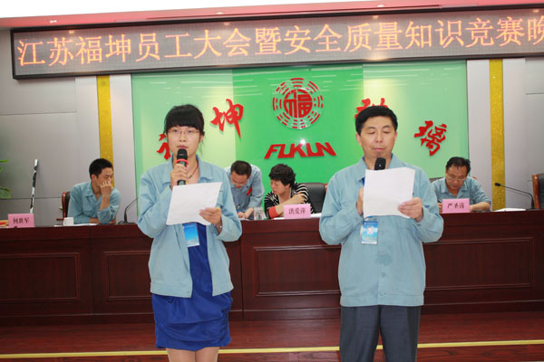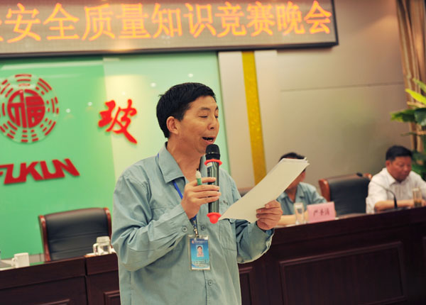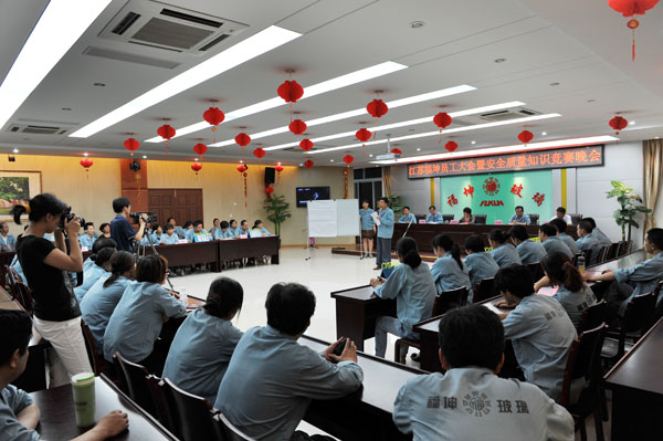 为进一步强化安 全、质量管理,坚决杜绝各类安 全隐患和质量通病,实现安 全生产“零事故”和产品质量“零问题”,确保公司全年目标任务的顺利完成,公司结合全国第十二个“安 全生产月”,深入开展了“安 全质量月”活动,并于7月4日晚以一场别开生面、寓教于乐的“知识竞赛晚会”将活动推向高峰。