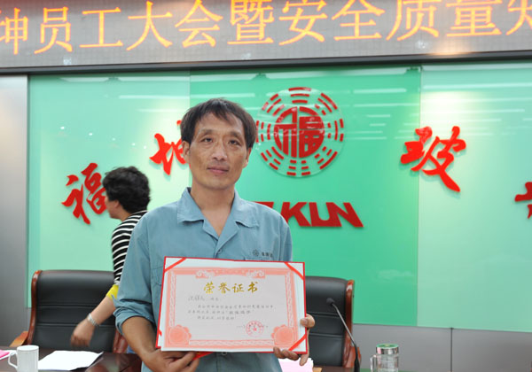 预处理车间沈维民同志被授予本次竞赛活动“参与选手”奖