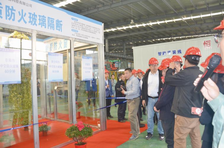 与会代表参观我司防火玻璃样品