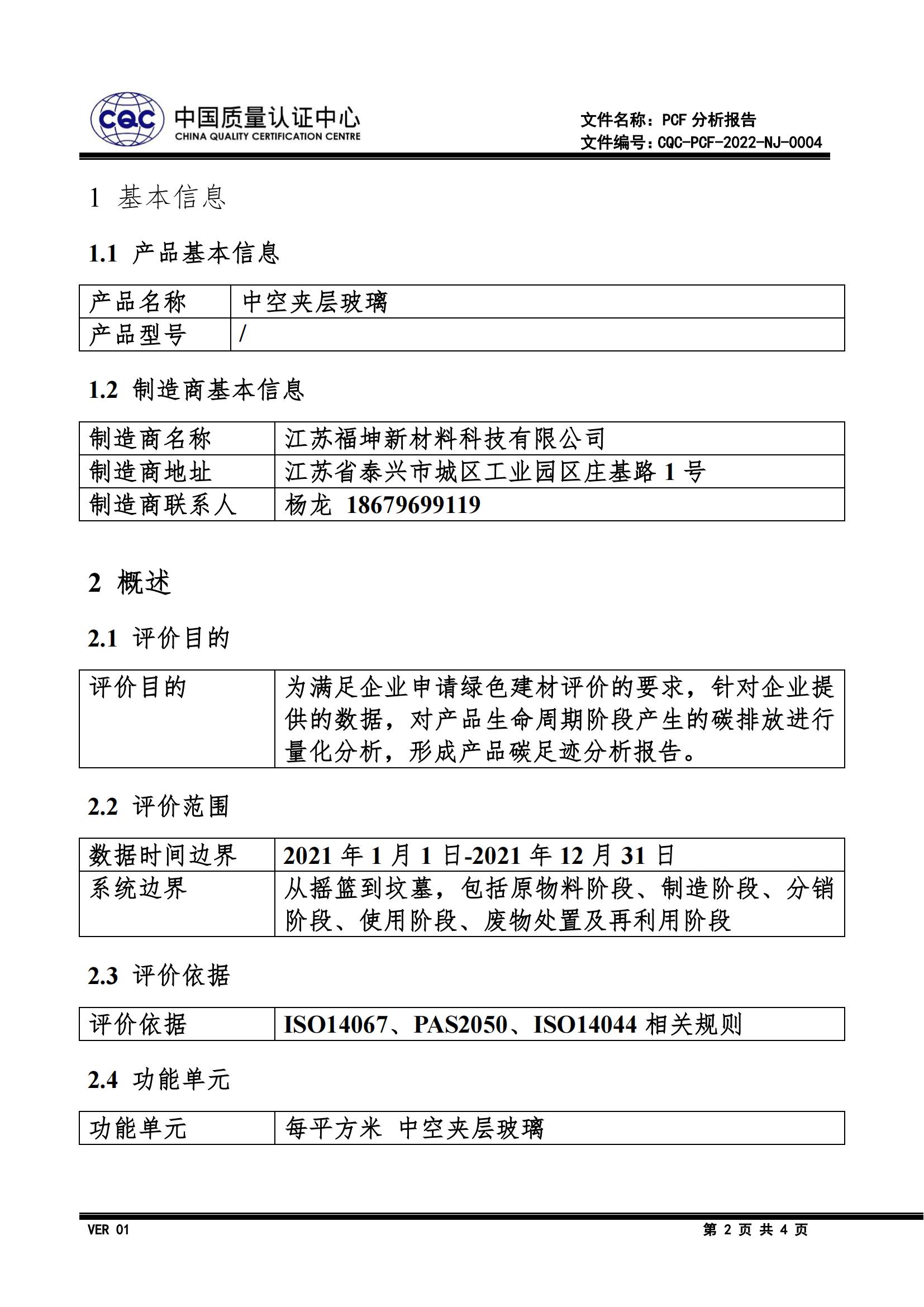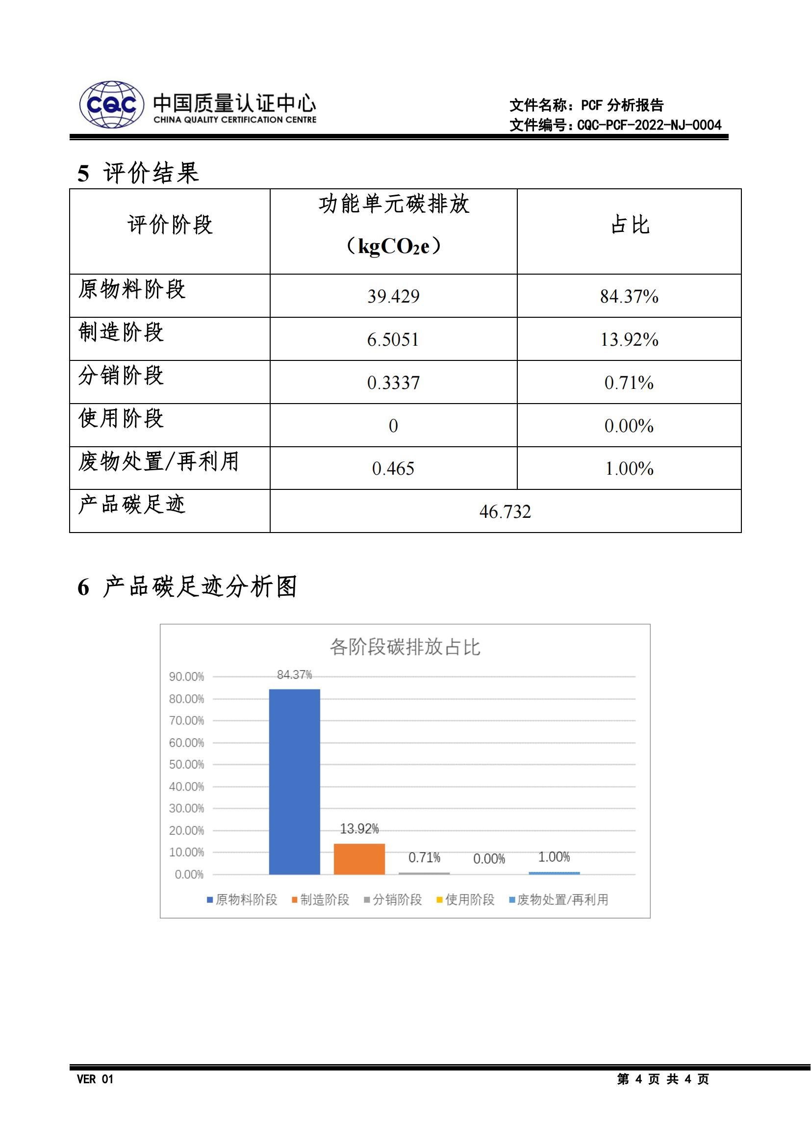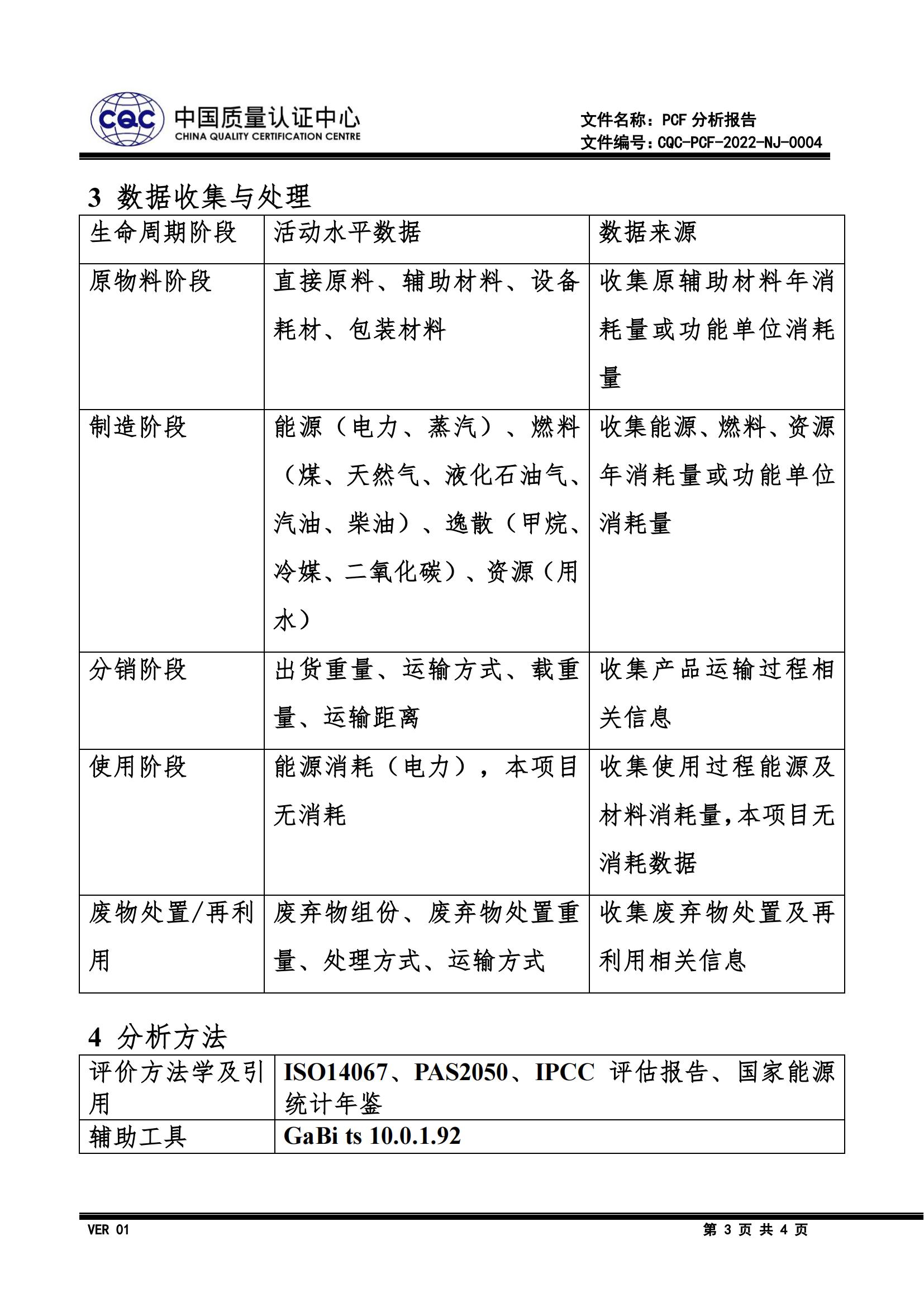 产品碳足迹分析报告及温室气体核查陈述报告-公示