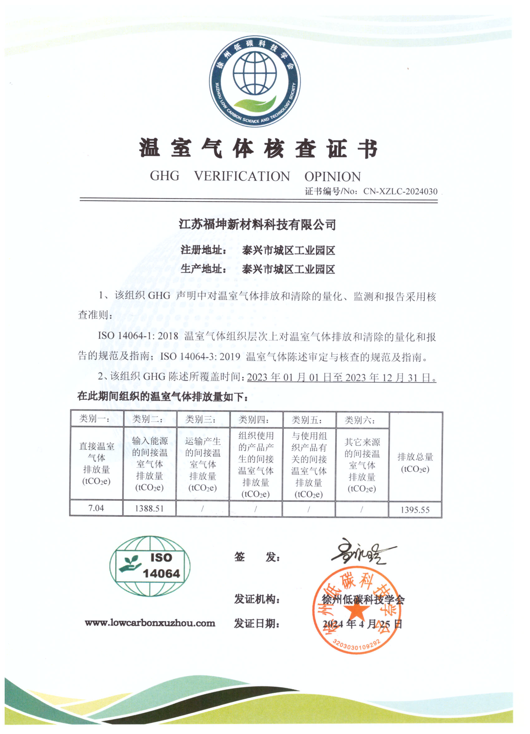 温室气体核查证书